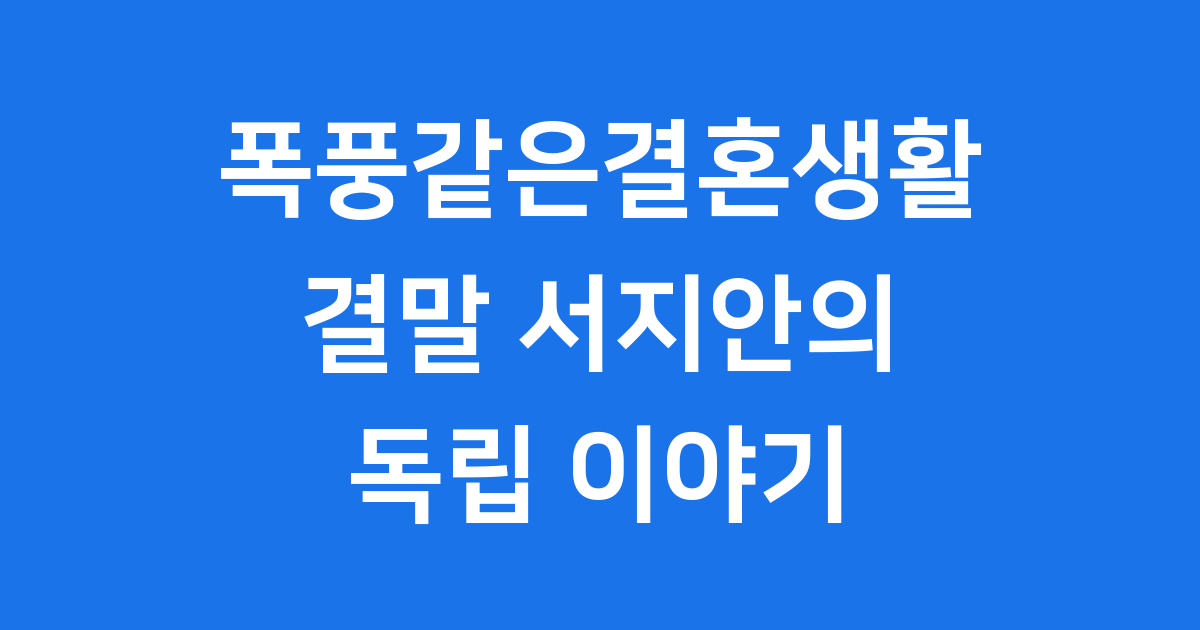 드라마 폭풍같은결혼생활의 결말은 많은 분들이 궁금해하셨을 거예요. 결국 서지안은 조진성과의 이혼을 마무리하게 됩니다. 이혼 과정에서 위자료와 변호사 비용 등 현실적인 문제들이 언급되기도 했어요.
